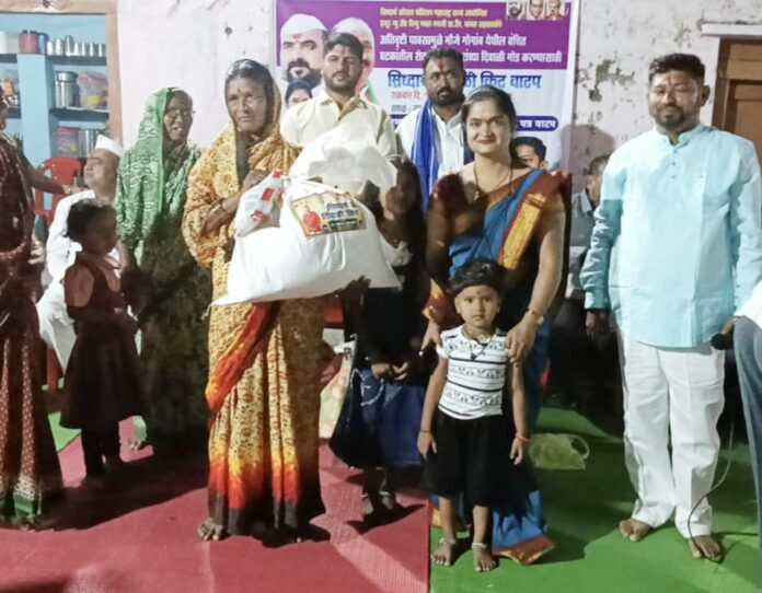 अतिवृष्टी व पुरामुळे नागरिकांचे मोठे नुकसान झाले असून,अनेक कुटुंब संकटातून बाहेर येऊ शकलेली नाहीत.अशा बिकट परिस्थितीत हजूर न्यू अँड रिन्यू एबल एनर्जी प्रा.लि.व सिद्धार्थ सोशल फौंडेशन या संस्थेच्यावतीने पूरग्रस्त कुटुंबांना दिवाळी सण गोड व्हावी यासाठी किराणा साहित्याचे १२५ किट वाटप करून मदतीचा हात देण्यात आला.